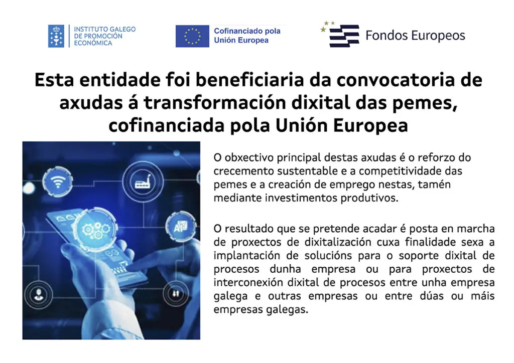 The project is funded by the Axencia Galega de Innovación (GAIN), through the Conecta hubs program and co-financed by the European Regional Development Fund (ERDF) under the FEDER Galicia 2014-2020 operational program. It also has the support of the Vicepresidencia Segunda e Consellería de Economía, Empresa e Innovación.